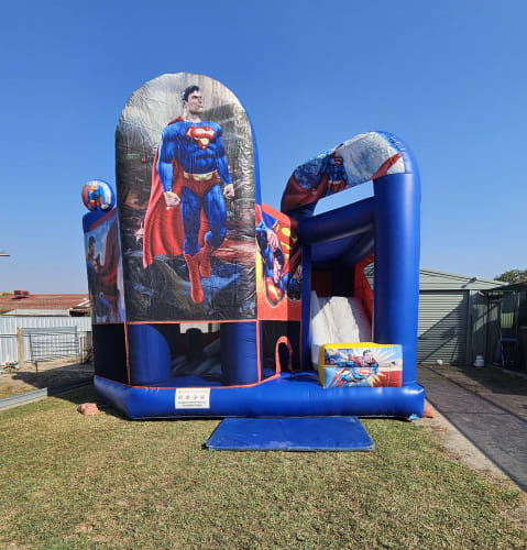 Hire the Superman jumping castle for unforgettable kids' parties and community events. Fast to set up. Bright, bold Superman graphics excite children and parents alike. Perfect for birthdays, school fetes, and family gatherings. Reliable hire service with clear safety checks and friendly delivery. Book now to secure the best date. 🚚✨
