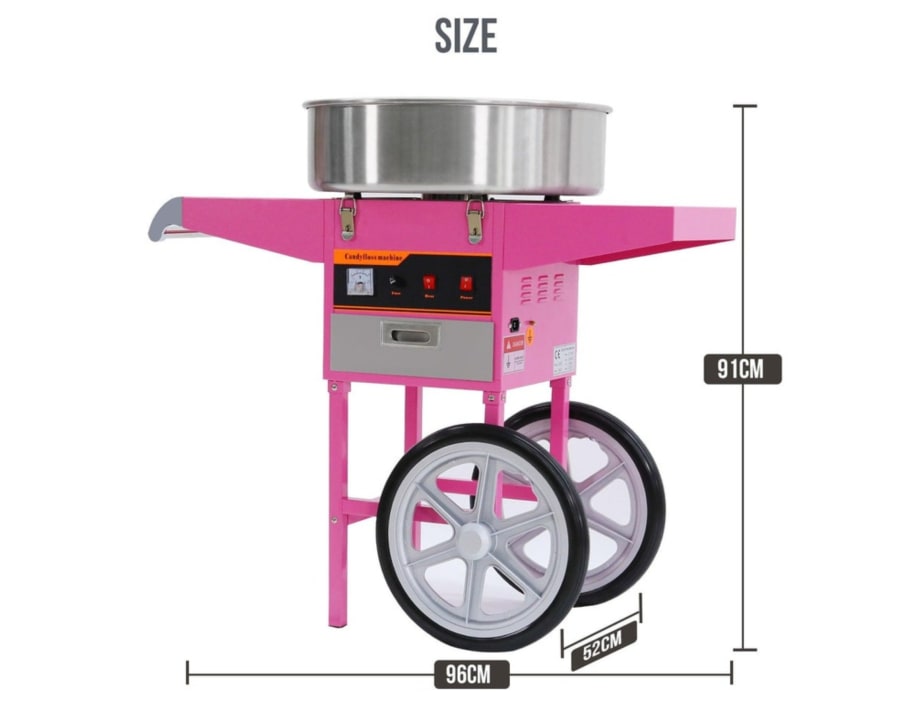 Create instant nostalgia and sweet smiles with the Fairy floss machine with cart. Perfect for parties, markets and corporate events. This eye-catching cart delivers professional cotton candy fast. Easy to operate. Simple to set up. High visual impact. Ideal for hire and event planners who want a memorable treat station. ✨